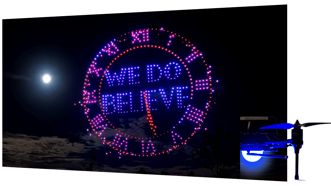 Basically, it can be said that the more drones there are, the more diverse the possibilities of presentation become. From our expertise, we can say that beautiful lighting effects and formations are possible from a number of 100 drones and the multi-dimensional possibilities can conjure up breathtaking effects and images in the sky with 200 – 2000 drones. The size of the drone package is of course always dependent on the customer’s wishes, requirements and budget.